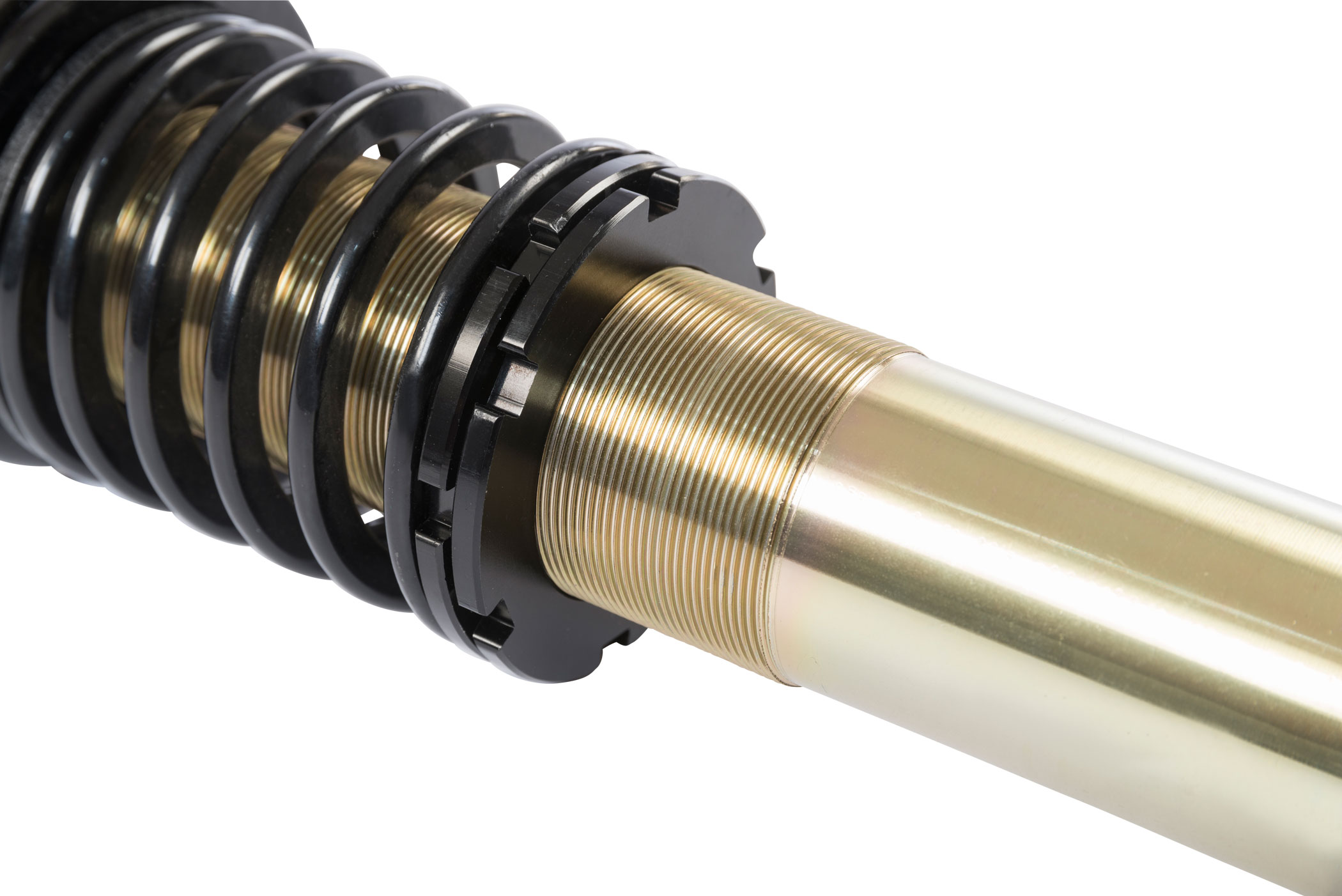 Die mehrfach vergüteten Federn sind durch ihre schwarze Beschichtung in jedem Radhaus ein Hingucker. Auch die verzinkten Federbeine und lackierten Dämpfer halten, wie ein Serienfahrwerk, den unterschiedlichsten Witterungsverhältnissen stand, sowie auch die aus Aluminium gefertigten Federteller und Tieferlegungs - Verstellringe mit ihrer ebenso schwarzen Eloxal - Schicht.