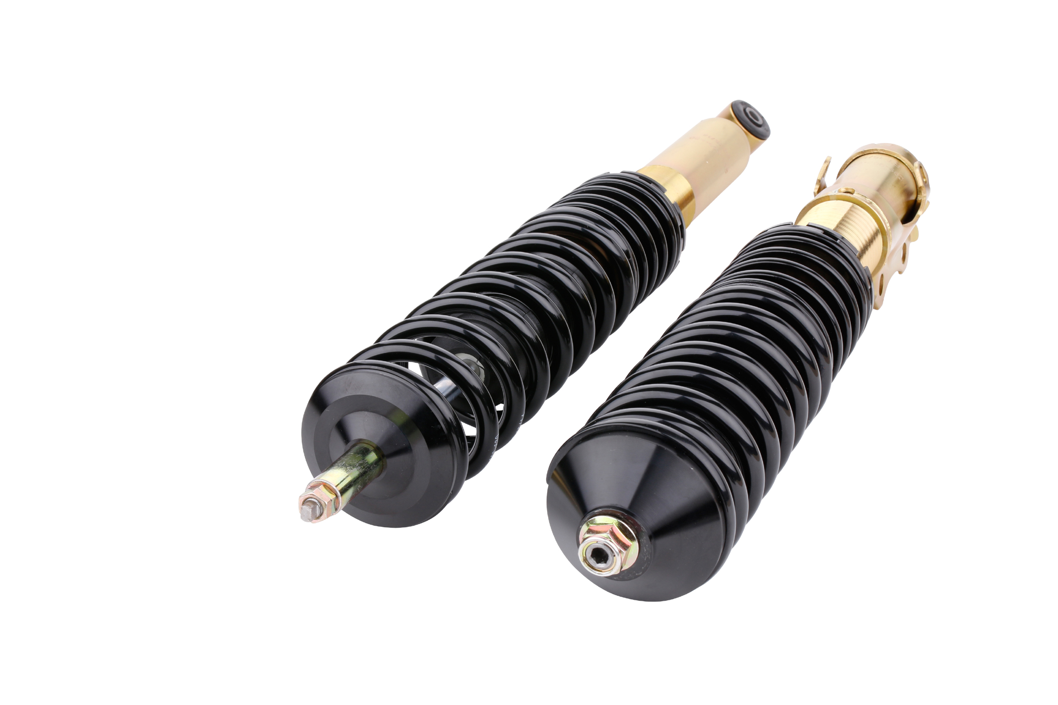 Die mehrfach vergüteten Federn sind durch ihre schwarze Beschichtung in jedem Radhaus ein Hingucker. Auch die verzinkten Federbeine und lackierten Dämpfer halten, wie ein Serienfahrwerk, den unterschiedlichsten Witterungsverhältnissen stand, sowie auch die aus Aluminium gefertigten Federteller und Tieferlegungs - Verstellringe mit ihrer ebenso schwarzen Eloxal - Schicht.